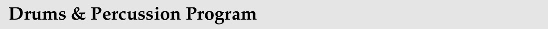 The objective of the program is for the student to become proficient on drums & percussion by introducing and developing the following skills. • Reading musical notation as applied to the instrument. This will include interpreting standard notation. • The study of standard rudiments and applying them to the drum set. • Learning various style of drumming such as rock, jazz, country as well as various ethnic styles • The ability to have each hand and foot work independently from the other. • To develop a repertoire of performance pieces. It is important that the musical fundamentals studied are applied in the performance and memorization of various compositions for the drums. This should include the students favorite songs too. |